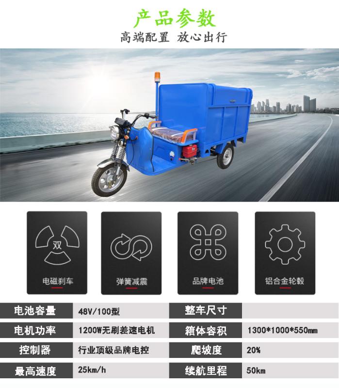 產(chǎn)品簡介:型號:華保德系-1;1、續(xù)航里程:50km;轉(zhuǎn)彎半徑:5m;爬坡度:20度;最高時速:25km/h;2、電池:48V/150AH;電機:1200W;箱體:1500*900*750mm;
