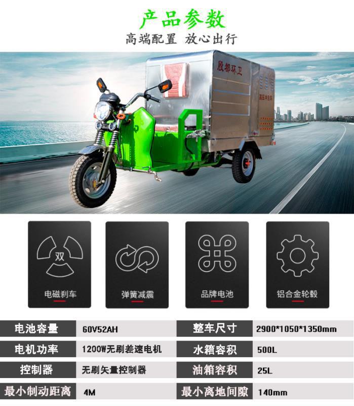 車架:電動三輪高壓沖洗車專用車架,帶坐桶護(hù)欄和后保險桿,防止電池組和車身撞擊受損;