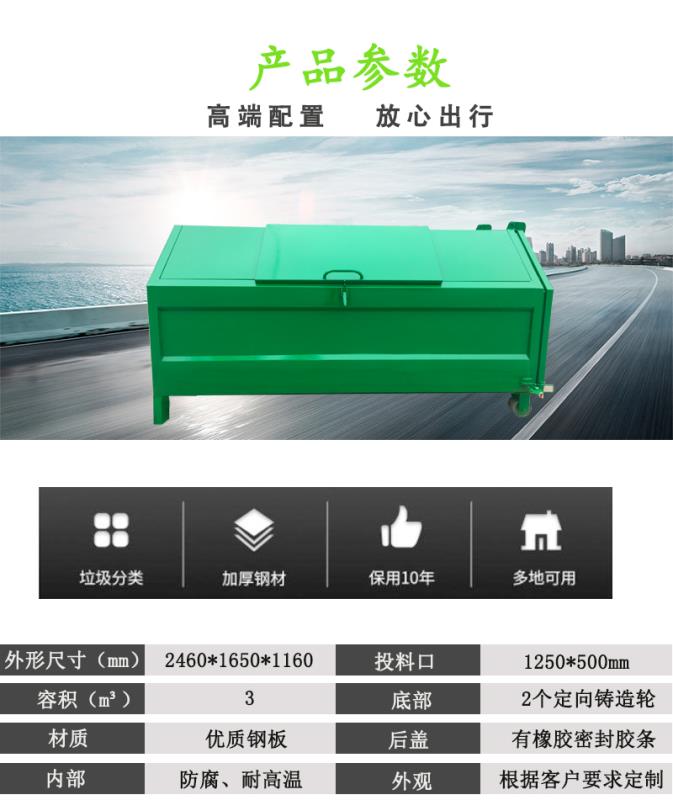 產(chǎn)品簡介:垃圾箱容積:3立方。